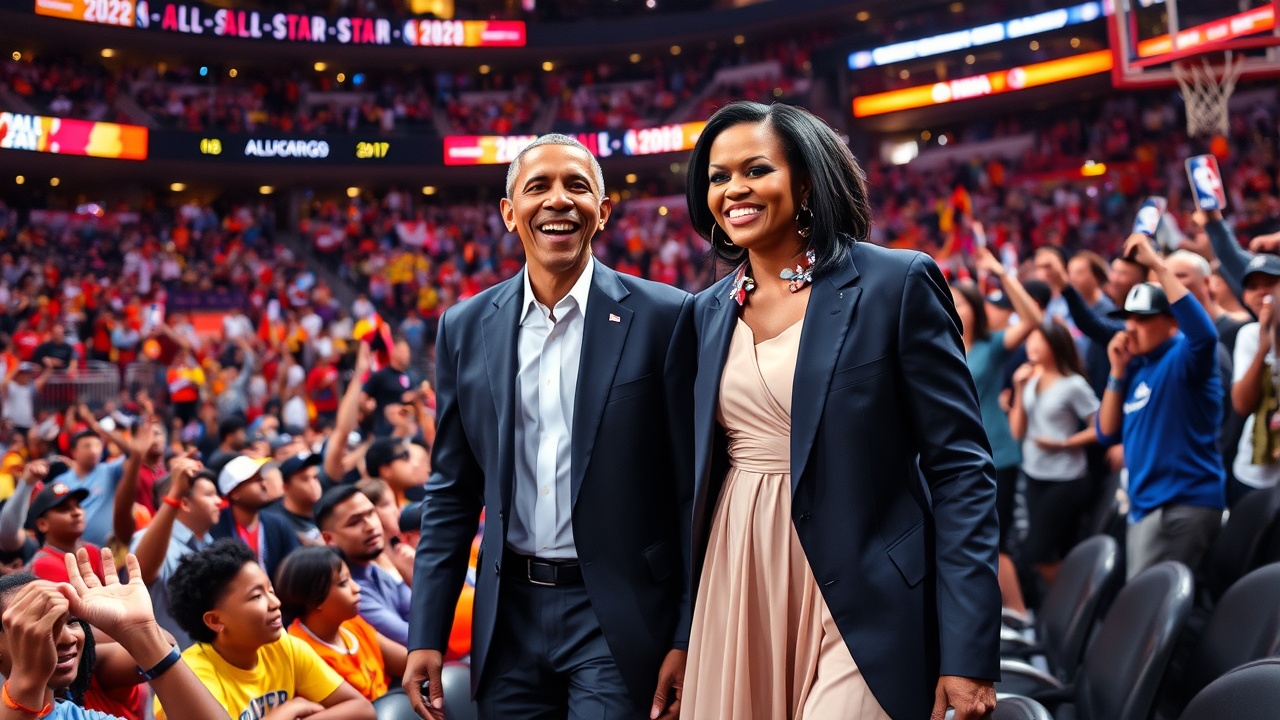 Le NBA All-Star Game est réputé pour rassembler les joueurs les plus talentueux et emblématiques de la ligue. Cet événement attire également de nombreuses célébrités et figures publiques de tout le pays, venues profiter du spectacle du basketball. L’ancien président des États-Unis, Barack Obama, et son épouse, Michelle Obama, étaient présents à l’événement, assis aux côtés de la légende du basketball, Julius Erving.