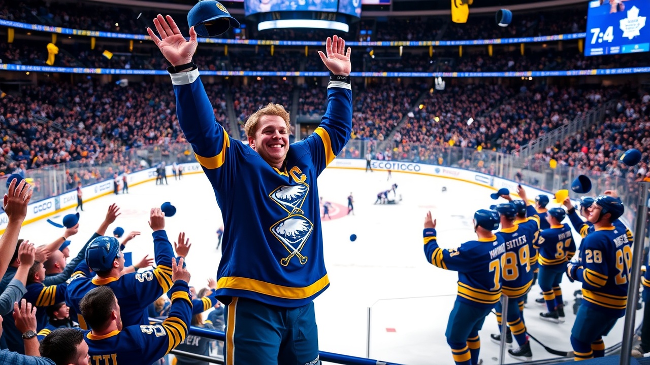 TORONTO (AP) — Rasmus Dahlin a inscrit le premier hat trick de sa carrière en NHL, accompagné de deux passes décisives, permettant aux Buffalo Sabres de s’imposer 7-4 face aux Toronto Maple Leafs, mardi soir. Tage Thompson, qui a marqué un but et délivré une passe décisive lors de son 500ème match en NHL, ainsi que Josh Doan, Alex Tuch et Jack Quinn, ont également contribué à la victoire de Buffalo, qui enchaîne ainsi quatre succès consécutifs.
