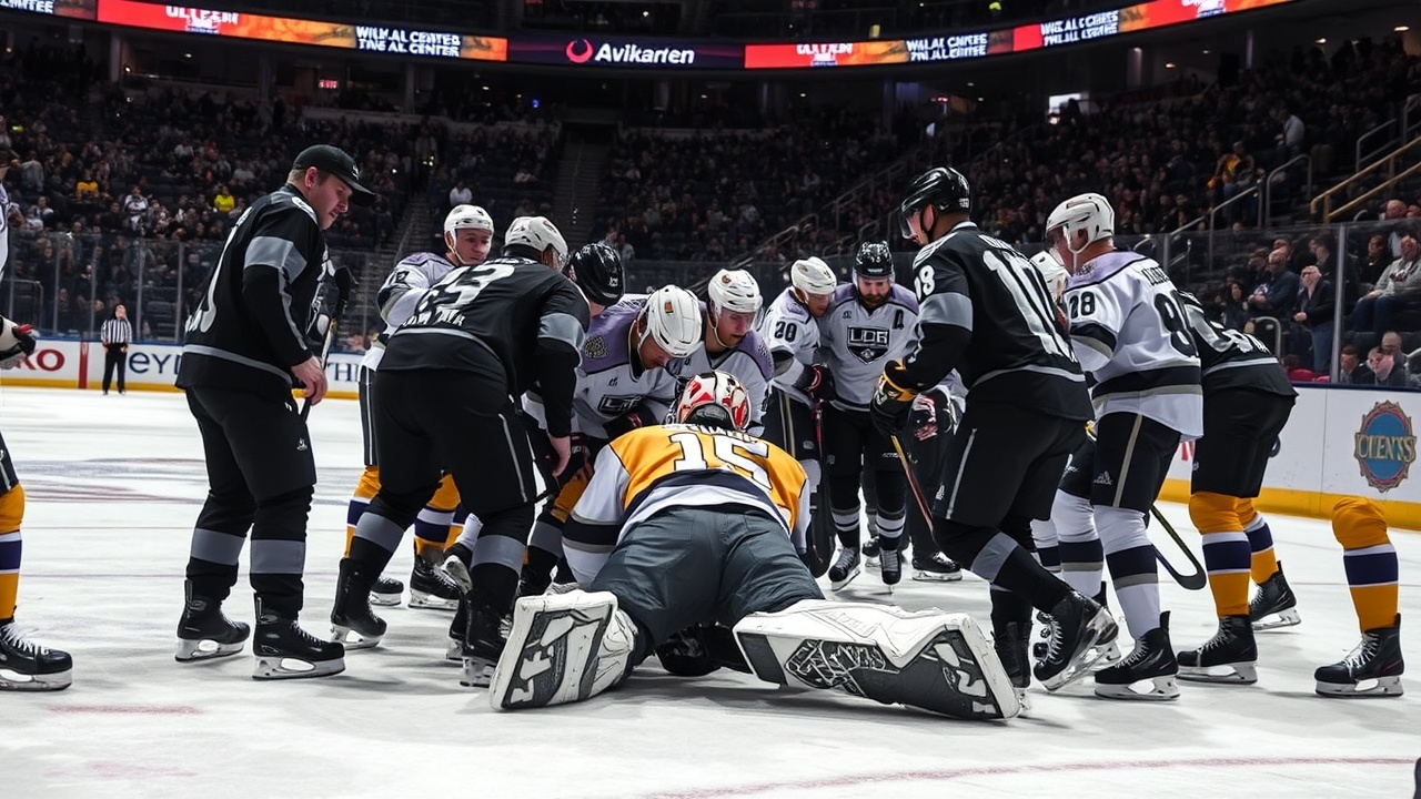 Kuemper, qui doit représenter le Canada aux Jeux Olympiques le mois prochain, a apparemment été blessé lorsque Jonny Brodzinski des Rangers a foncé vers le filet et a heurté la tête de Kuemper en tentant de s’arrêter. Bien que la collision ne semble pas avoir été violente, Kuemper a patiné prudemment lors de l’arrêt suivant avant de se diriger vers le tunnel menant au vestiaire des Kings, avec 38,8 secondes restantes dans la période.