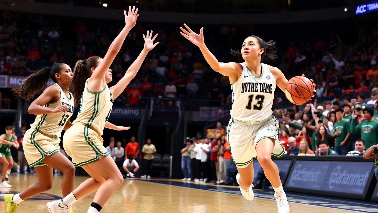 DULUTH, Ga. (AP) — Hannah Hidalgo a inscrit 28 points, pris huit rebonds, distribué cinq passes décisives et réalisé cinq interceptions. Cassandre Prosper a ajouté 12 points, permettant à la No. 5 Notre Dame de battre Miami, 12e tête de série, sur le score de 69-54, jeudi, lors du deuxième tour du tournoi ACC.