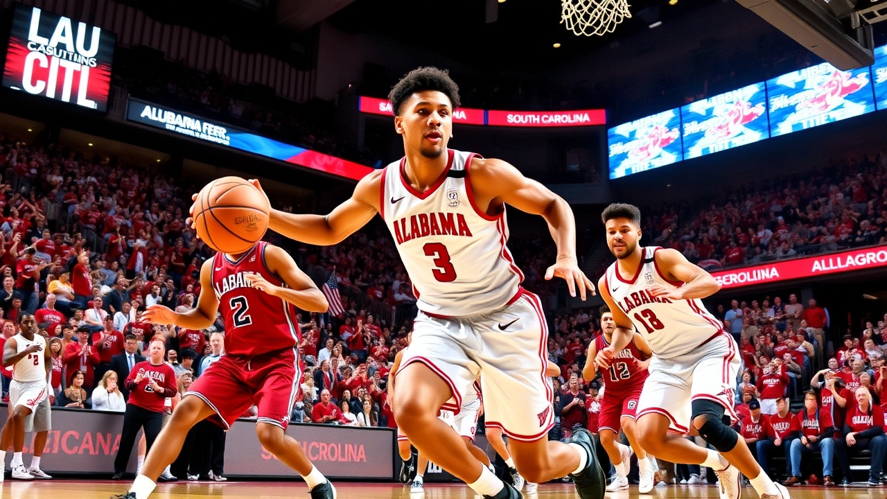 TUSCALOOSA, Ala. (AP) — Aden Holloway a inscrit 20 points, tandis que Labaron Philon Jr. et le remplaçant Latrell Wrightsell Jr. ont chacun ajouté 19 points, permettant à l’Alabama de s’imposer 89-75 contre la Caroline du Sud, samedi soir. Cette victoire marque la quatrième consécutive des Crimson Tide.