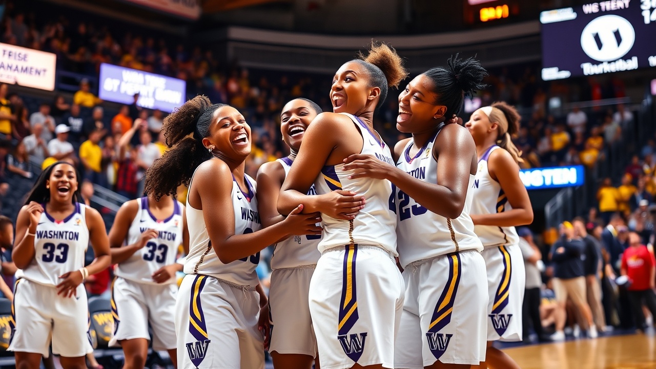 INDIANAPOLIS (AP) — Elle Ladine a réalisé un record personnel cette saison en marquant 25 points, tandis qu’Avery Howell a ajouté 18 points et neuf rebonds, permettant à Washington de s’imposer 76-64 face à USC lors du deuxième tour du tournoi Big Ten, jeudi. Les Huskies, classés huitièmes avec un bilan de 22 victoires et 9 défaites, affronteront UCLA, tête de série et deuxième du tournoi, lors des quarts de finale vendredi.