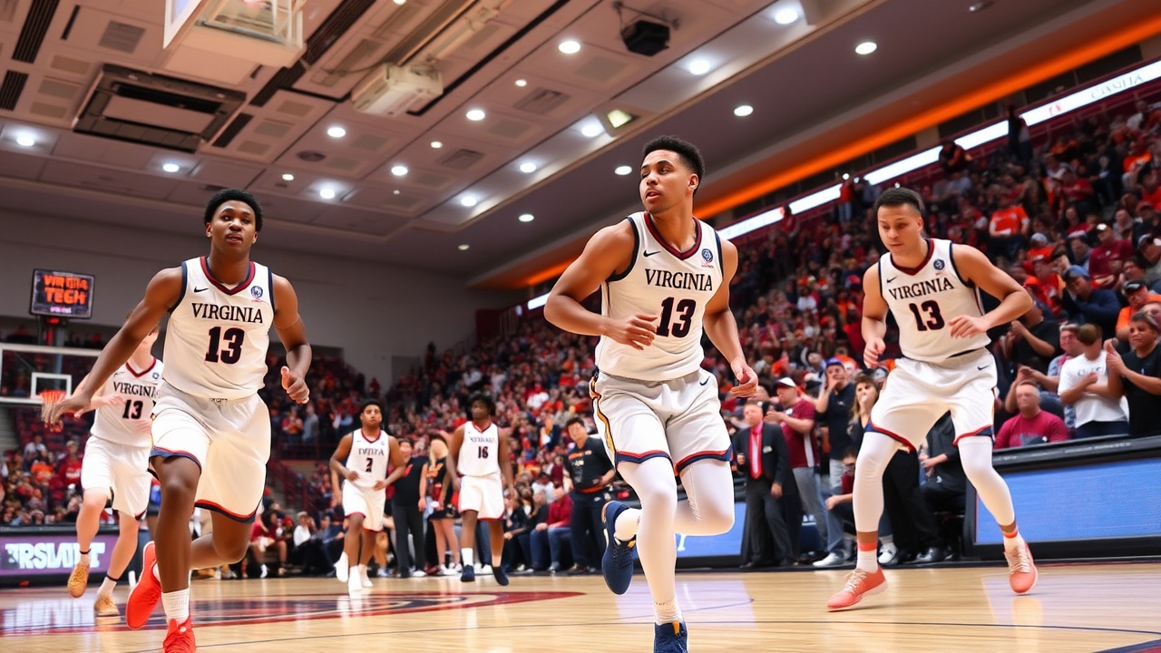 Virginia Tech a réagi après la pause, égalisant le match à 51-51 avec 10:56 à jouer, mais Virginia a ensuite réalisé une série de 8-0 pour reprendre le contrôle du match.