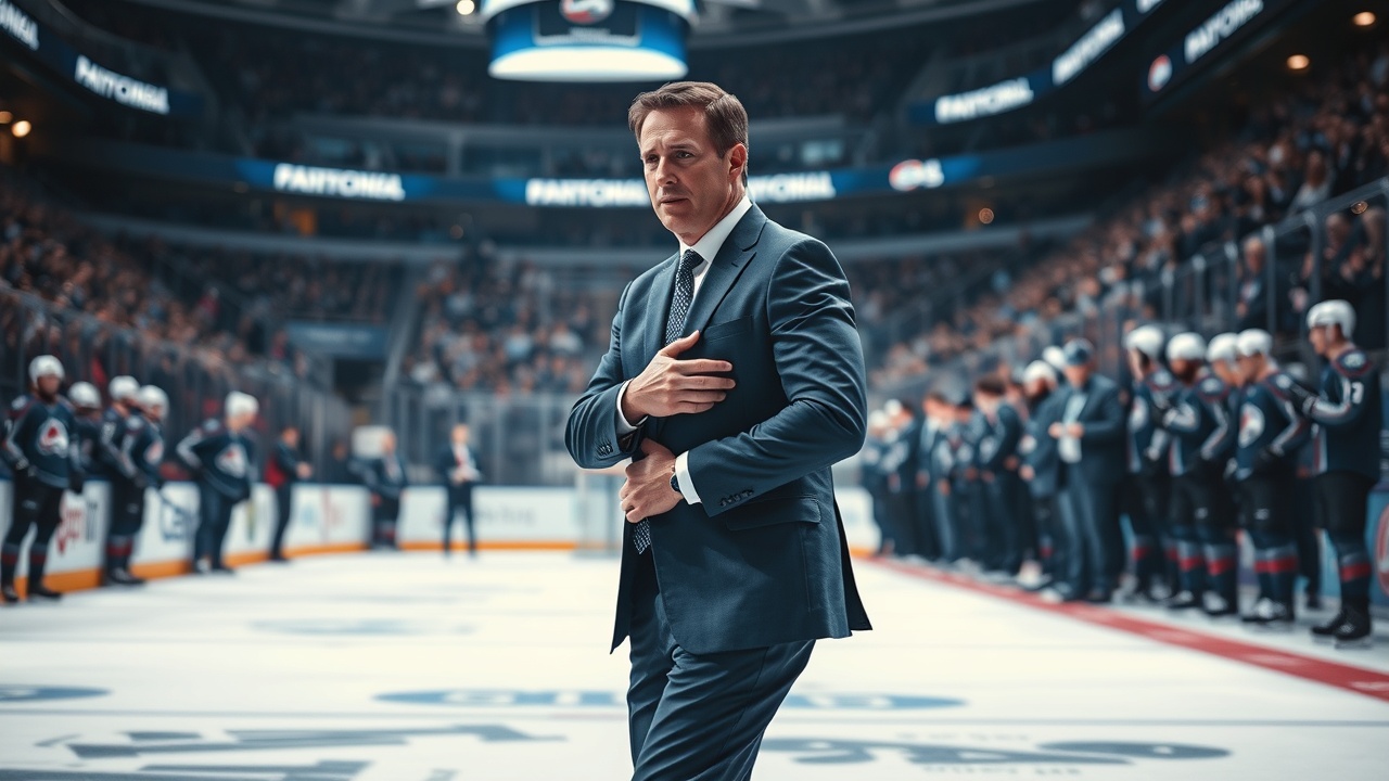 Cet article est initialement paru sur USA TODAY : L’entraîneur des Avalanche, Jared Bednar, frappé par un palet, quitte le match contre les Golden Knights.