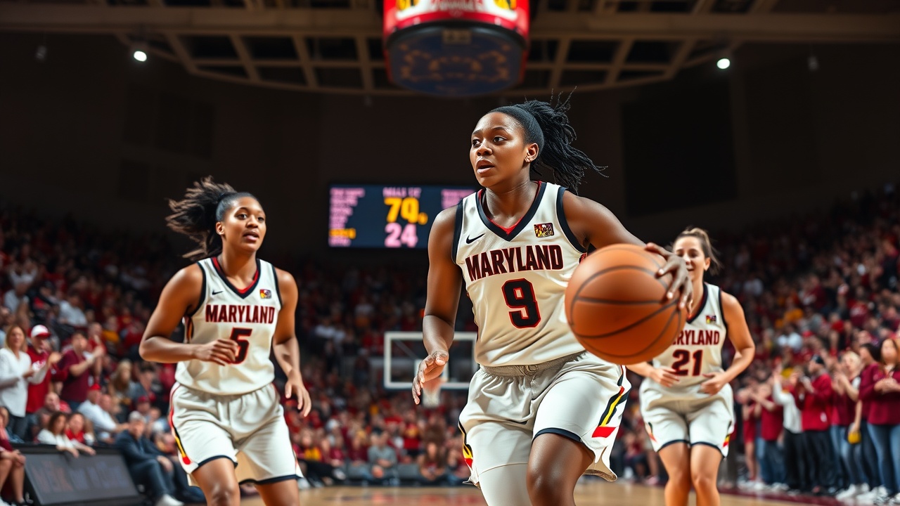 Oluchi Okananwa a inscrit neuf des 15 points des Terrapins lors du premier quart-temps, permettant à Maryland (19-6, 7-6 Big Ten) de mener 45-28 à la mi-temps après un deuxième quart de 30-17.