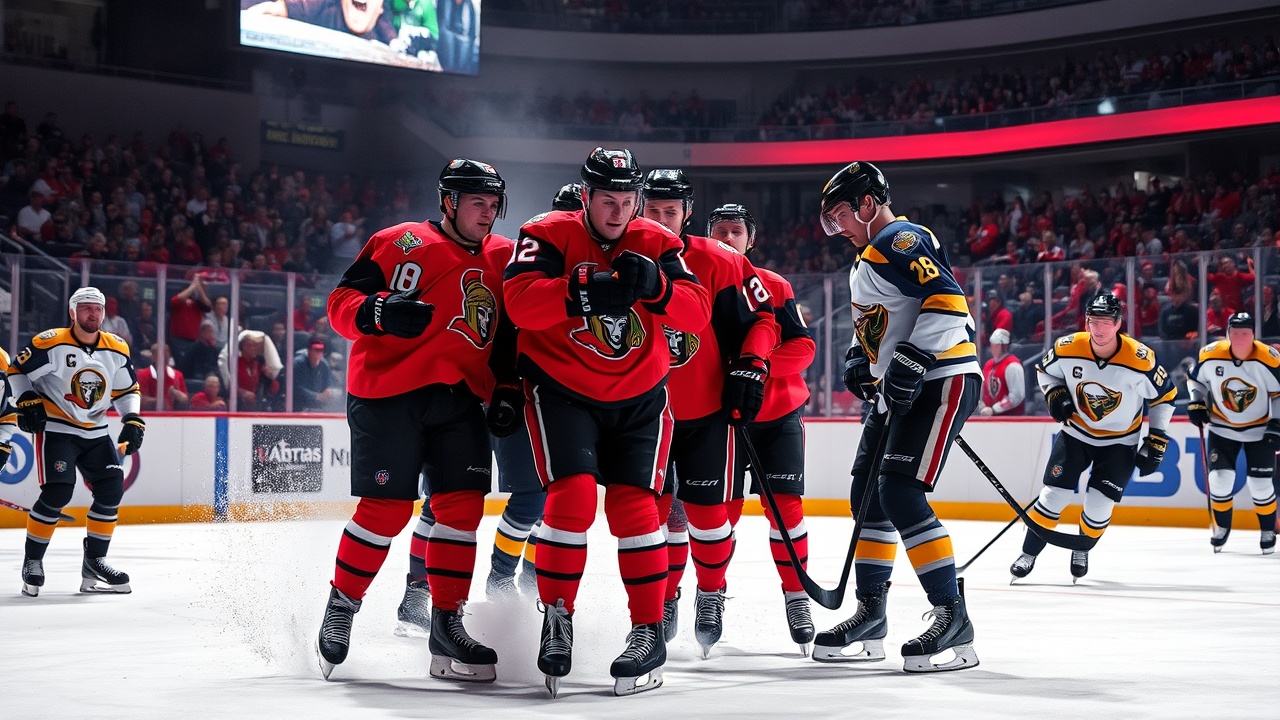 Eller a dévié un tir du défenseur Artem Zub depuis le point, trouvant le fond du filet du gardien Ukko-Pekka Luukkonen à 5:55 de la troisième période. Le défenseur de Buffalo, Mattias Samuelsson, avait ouvert le score à 8:49 de la deuxième période avec un tir du poignet. Dylan Cozens a égalisé avec 4:42 à jouer dans cette même période grâce à un tir dévié, portant son total à 26 buts cette saison. Ridly Greig et Shane Pinto ont ensuite ajouté des buts dans un filet désert. Linus Ullmark a réalisé 21 arrêts pour Ottawa, qui est actuellement en deuxième position pour la wild-card à l’Est, entamant une série de cinq matchs à domicile. Luukkonen a quant à lui arrêté 20 tirs pour Buffalo.