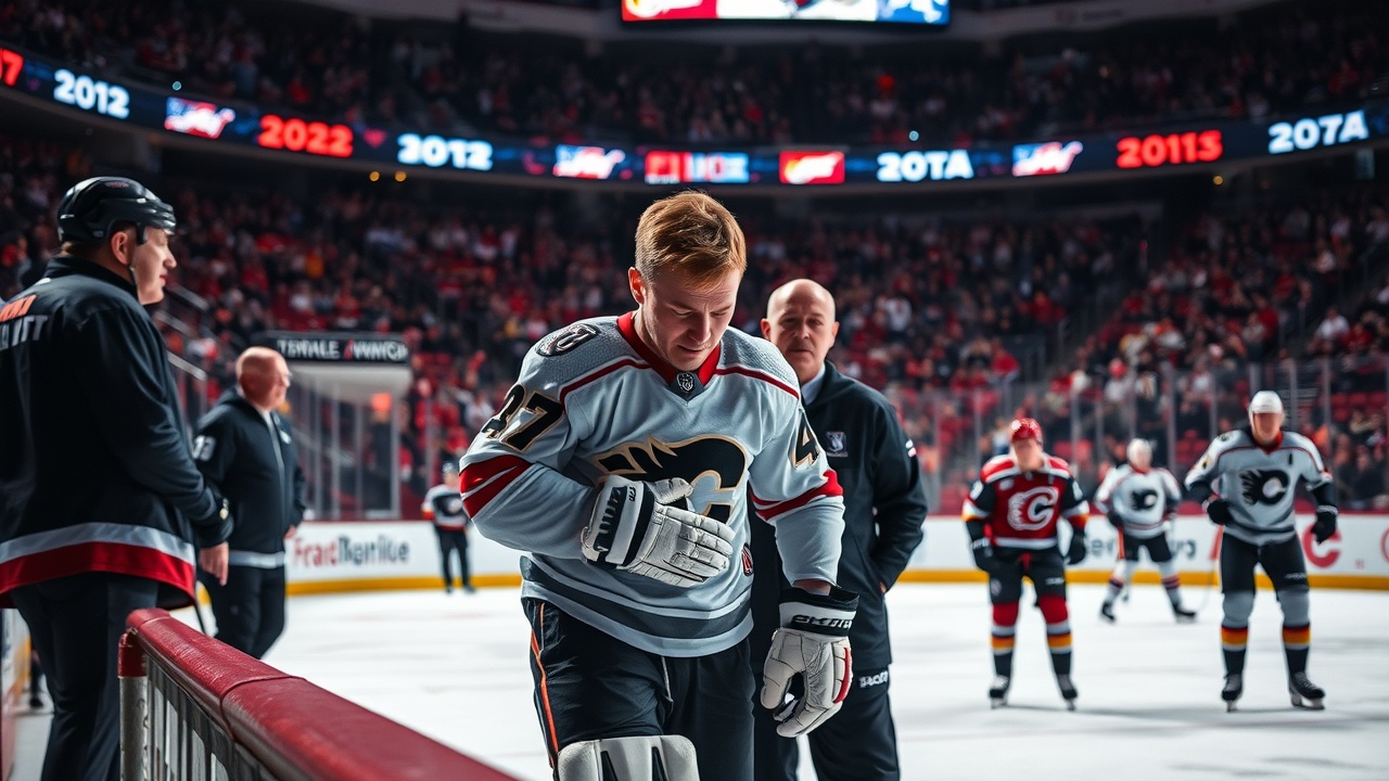 Plus tard dans la période, alors que la Floride était en train de tuer une longue supériorité numérique des Flames, Niko Mikkola a été en retard lors d’une contre-attaque à deux contre un. Alors qu’il commençait à se retourner rapidement pour défendre après qu’Evan Rodrigues ait perdu le puck, il a percuté Ryan Strome des Flames et est tombé, se tenant ensuite la jambe/le genou gauche. Mikkola, blessé, a dû être aidé hors de la glace. Il n’est pas revenu au match.