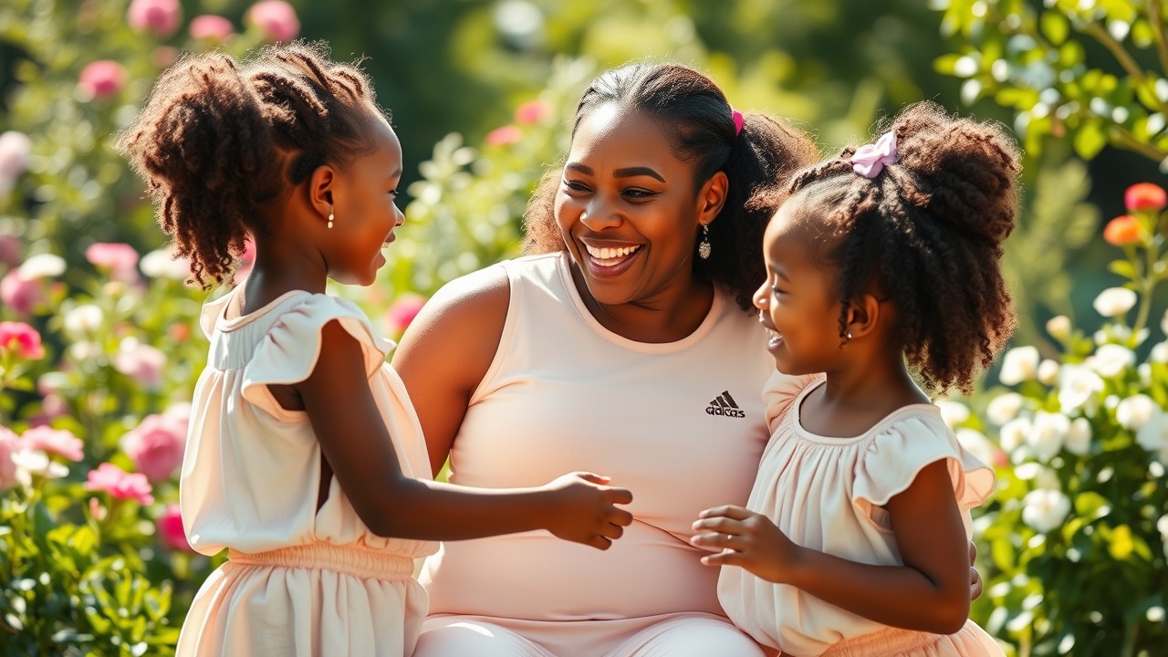 Les photos montrent Williams vêtue d’une longue robe en soie Etro avec un motif floral paisley, présentant un décolleté en V plongeant, de longues manches amples et une ceinture cintrant sa taille. Devant elle se trouvaient ses filles, Olympia, 8 ans, et Adira, 2 ans, toutes deux habillées en tenues florales de Pâques et faisant des signes de paix à la caméra. Olympia portait une robe blanche ornée de fleurs aquarelle roses, tandis qu’Adira arborait une robe bleue avec des appliqués en rosettes et un manteau en fourrure blanche.