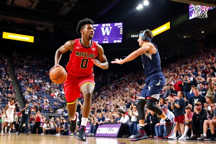 Andre Mills·Basketball·Big Ten·Elijah Saunders·Hannes Steinbach· Andre Mills marque 21 points et mène Maryland à une victoire de 64-60 contre Washington février 21, 2026 Editor Résumé du Match COLLEGE PARK, Md. (AP) — Andre Mills a inscrit 21 points pour guider…