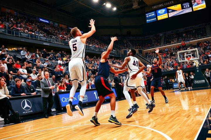 Alex Karaban·Basketball·Big East·Braylon Mullins·Eric Reibe· Ball et Karaban mènent le No. 6 UConn à une victoire de 79-75 contre Georgetown février 15, 2026 Editor Résumé du Match UConn vs Georgetown STORRS, Conn. (AP) — Solo Ball a marqué 20 points…