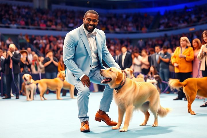 Atlanta·Basketball·Deandre Ayton·Derik Queen·Draymond Green· Le parcours de Tyrese Maxey lors du National Dog Show 2025 novembre 28, 2025 Editor Tyrese Maxey et le Purina Pro Plan Incredible Dog Challenge Vêtu d’un ensemble gris, avec un…
