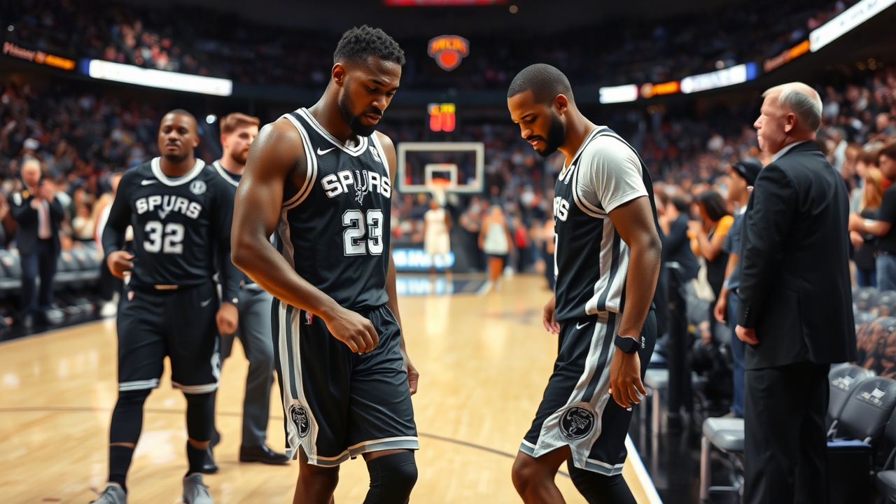 Victor Wembanyama a quitté le match de mercredi entre les New York Knicks et les San Antonio Spurs en raison d’une blessure apparente à la jambe. L’incident s’est produit tôt dans le quatrième quart, alors que les Knicks menaient 102-96. Wembanyama a semblé hyperétendre son genou gauche en atterrissant après avoir sécurisé un rebond. Il est tombé au sol et a eu besoin d’aide pour se relever, avant de boiter jusqu’au vestiaire.